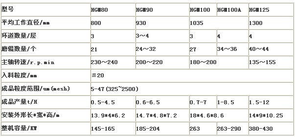 元明粉微粉磨的技術參數: